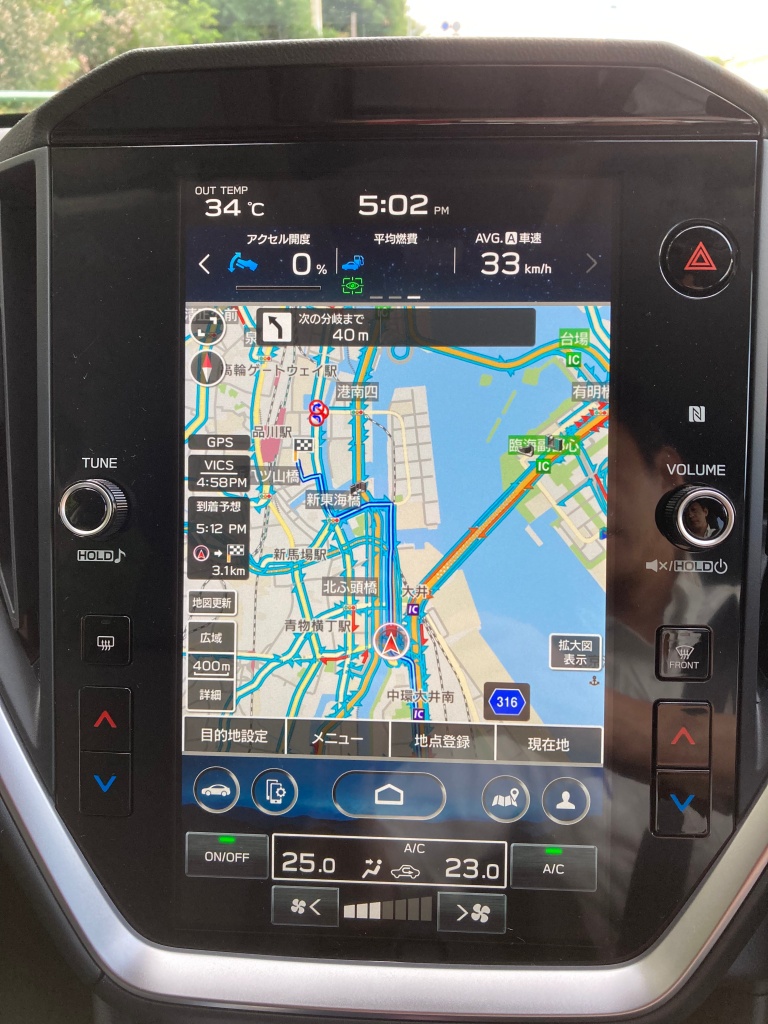 ナビ画面。縦長であることと、車線指示もあるので分かりやすい。