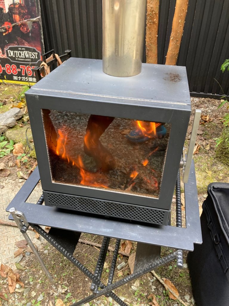 こちらは屋外に設置されていた小型の薪ストーブ。