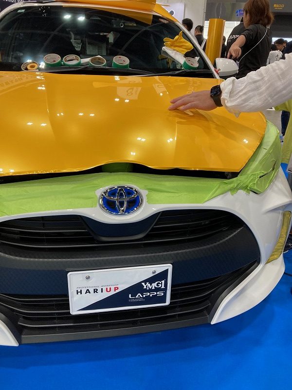 残るは洗車とかラッピング、研磨とかのコーナー。ラッピングの実演している会社さん