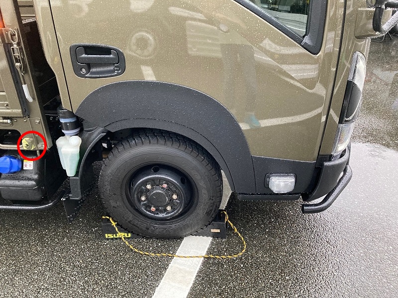 実車は初めて見ました。リアのダブルタイヤがシングル仕様なので荷台高さが高いです。