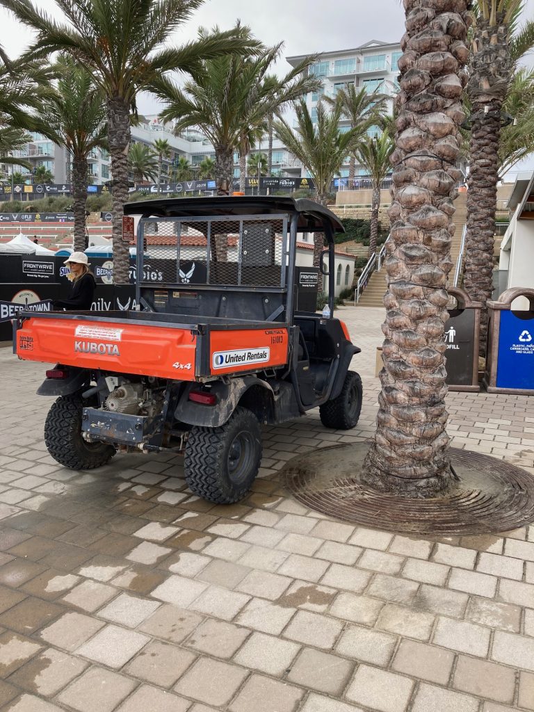 ちょうど1年前の夏、カリフォルニアのサンディエゴに行ってました。オーシャンサイドというビーチでサーフィンのイベントが行われており、そのときに見かけた作業車です。