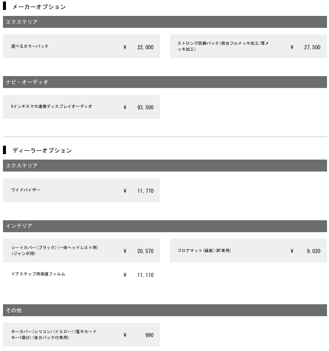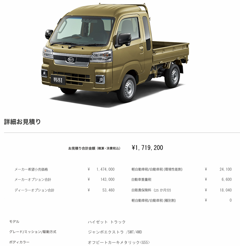 WEBで2022年に購入した私のジャンボと同じ仕様にして見積してみると、約7万円ほど高価に