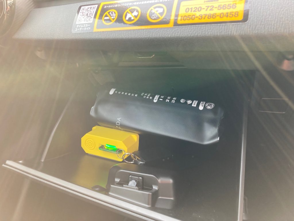 タイムズカーシェアの場合はグローブボックスから物理的な鍵を取り出し、エンジンスタート。